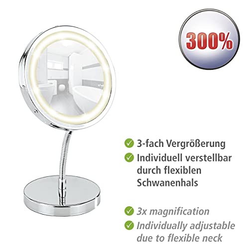 WENKO LED Specchio per cosmesi Brolo 15 cm - illuminato, orientabile, superficie specchiante ø 11 cm, Acciaio, 15 x 16.5 x 13 cm, Cromo