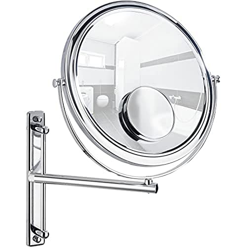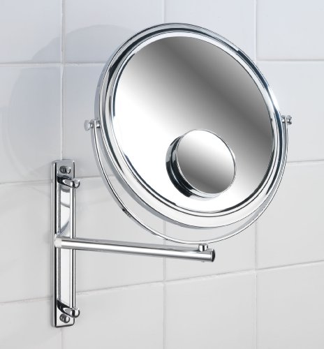 WENKO Specchio cosmetico da parete Bivona - regolabile in altezza, orientabile, superficie specchiante ø 25.5 cm, Acciaio, 30 x 34 x 22.5 cm, Cromo
