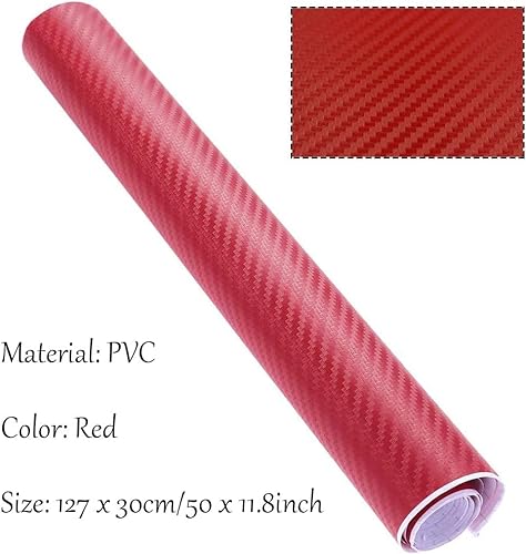 Wenmei Red Involucro per auto in fibra di carbonio Rotolo in vinile 3D in fibra di carbonio Vinile per auto Foglio di avvolgimento fai-da-te Adesivo per pellicola in rotolo - 127X30cm/50 X11,8 (rosso)