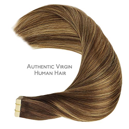 WENNALIFE Extension Capelli Veri Biadesivo, 20pcs 50cm 50g Balayage Marrone Cioccolato a Biondo Caramello Extension Biadesive Capelli Veri Lisci Remy Tape in Hair Extensions