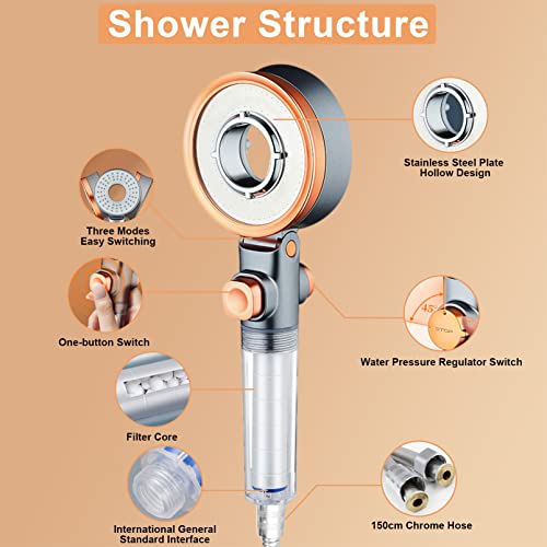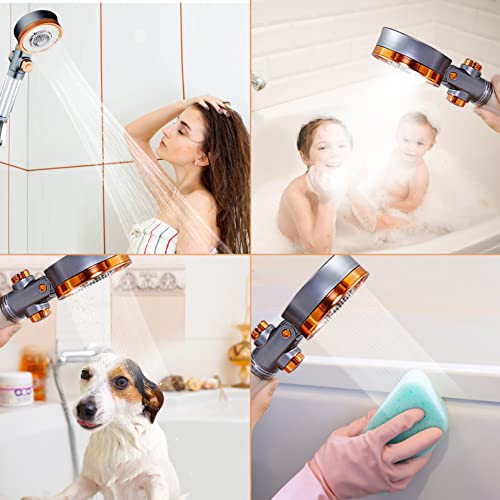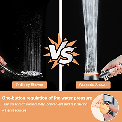 Wenosda Soffione, doccetta ad alta pressione su due lati con tubo flessibile da 1,5 M e 1 elemento filtrante, interruttore a getto premendo
