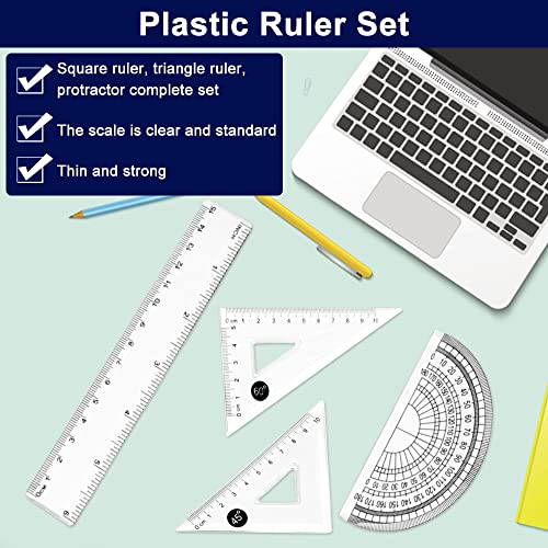 【Scala chiara per una facile misurazione】Due righelli in acciaio inossidabile, gli intervalli sono 0-15 cm (0-6 pollici), 0-20 cm (0-8 pollici), spessi e resistenti, non facili da piegare e la scala è chiara e standard . Quattro set di righelli di plastica sono un righello da 15 cm, un righello triangolare da 45°, un righello triangolare da 60°, un goniometro, la scala è chiara e luminosa, facile da leggere e facile da misurare.