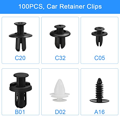 【6 diverse dimensioni】La confezione contiene 20 pezzi / C05, 20 pezzi / C20, 10 pezzi / C32, 10 pezzi / B01, 20 pezzi / D02, 20 pezzi / A16, un totale di 100 pezzi, 6 diverse dimensioni, sufficienti per soddisfare le tue esigenze di uso quotidiano. Copre la dimensione del foro da 5 mm a 10 mm, adatta per la maggior parte delle auto e moto comuni.
