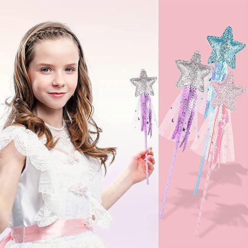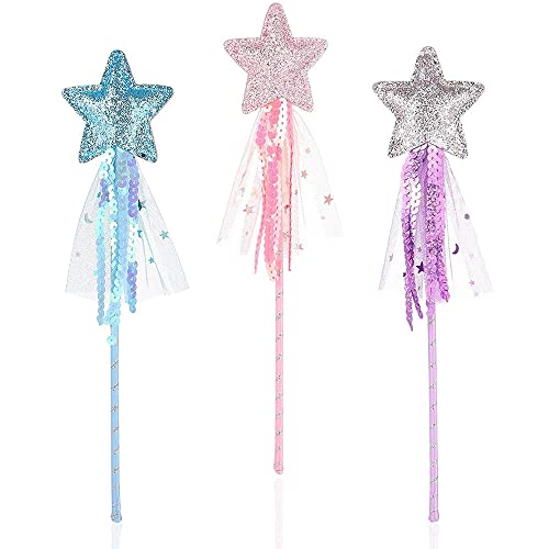 Wenrou 6 Pezzi Bacchetta Stella, Bacchetta Fata, Bacchetta di Stella Principessa, Bacchetta Magica Stella, per Ragazze Costume Natale Puntello Cosplay Fornitura Festa Compleanno (Rosa, Viola, Blu)