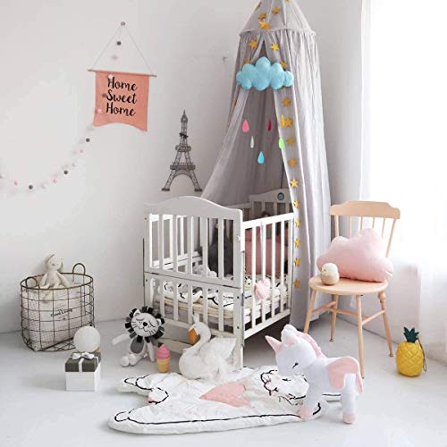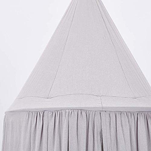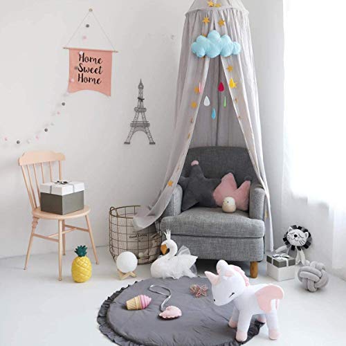 Wenscha Baldacchino grigio, per bambini, in cotone, per camera da letto, spogliatoio, gioco, altezza 230 cm, lunghezza orlo 260 cm, con ghirlanda a stelle