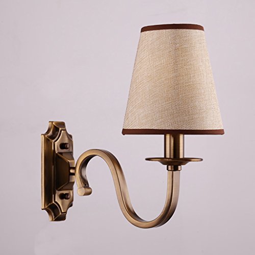 WENSENY Lampada da parete interni Luce della parete del LED Moderno Applique E14 1 * 60W 230V lampada da comodino Biancheria Paralume e nostalgico Staffa in ottone