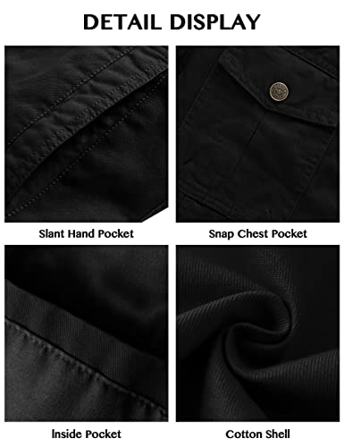 WenVen Giacca Militare Classica in Cotone Giubbotto con Zip Antivento Cappotto Casual Tempo Libero Giaccone Leggera Autunnale Uomo Nero S