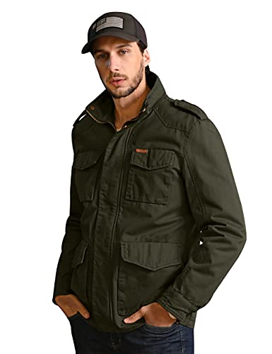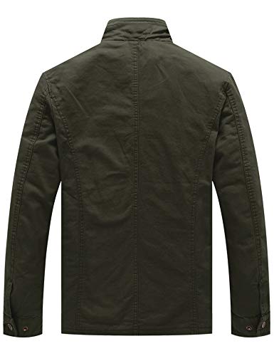WenVen Giacca Militare Leggera in Cotone Giubbotto con Zip Antivento Cappotto Casual Mezza Stagione Giacchetta Classica Tempo Libero Uomo Verde Militare S