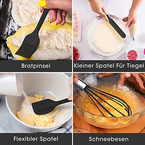 WenZBros Set di utensili da cucina in silicone 21 pezzi antiaderenti resistenti al calore, utensili da cucina per uso alimentare e lavabile in lavastoviglie con supporto nero...