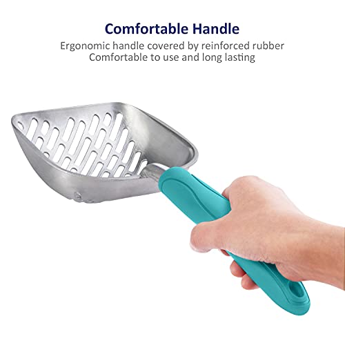 WePet - Paletta per lettiera per Gatti, in Lega di Alluminio, con Manico Lungo, per lettiere, per lettiere, in Alluminio Irregolare, con Manico Blu Turco