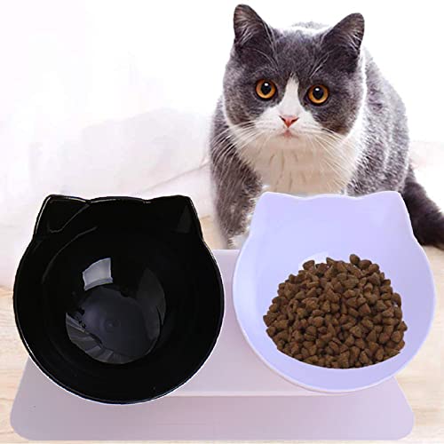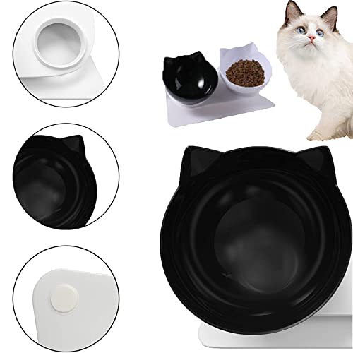 Weploda 2 Pezzi 15° Inclinata Doppio Gatto Ciotola con Supporto Rialzato, Ciotola per Gatti Anti Vomito con Supporto, Ciotola Antiscivolo in Bianco e Nero per Cibo e Acqua per Gatti e Cuccioli
