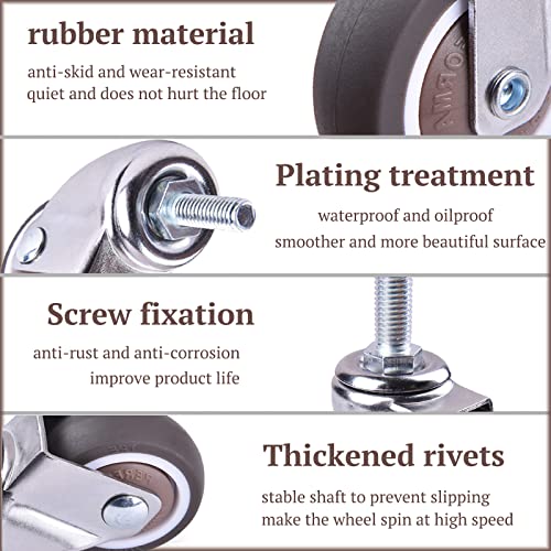 Weploda 4 Pezzi Rotelle per Mobili, M6x15mm, Ruote per Carrello, Con Dado di Montaggio e Chiave, Rotelle per Mobili per Piccole Apparecchiature e Piccoli Mobili (Marrone)