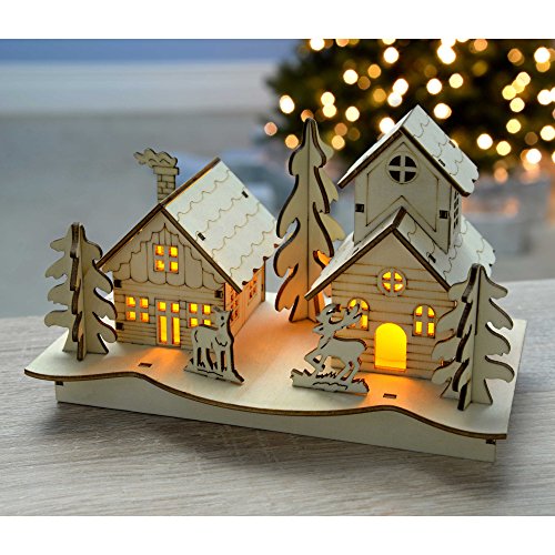 WeRChristmas Church, Decorazione Natalizia, Scena illuminata, luci Bianco Caldo, in Legno, 20 cm, Colore Naturale