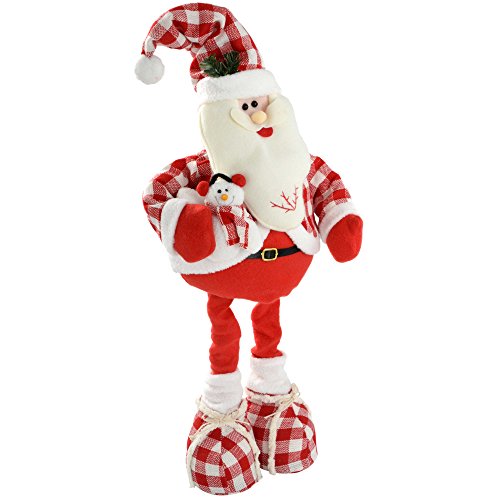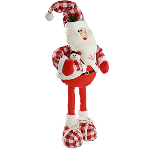 WeRChristmas - Decorazione natalizia da pavimento a forma di Babbo Natale, con gambe estensibili, 35 - 60 cm, fantasia abito: scozzese, colore: Rosso/Bianco