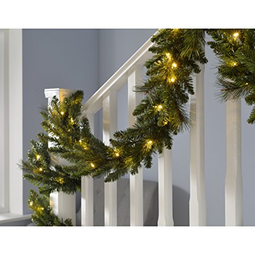 WeRChristmas - Ghirlanda natalizia, preilluminata da 40 luci a LED colore bianco caldo, circa 2,7 m, plastica, Green, 18 feet