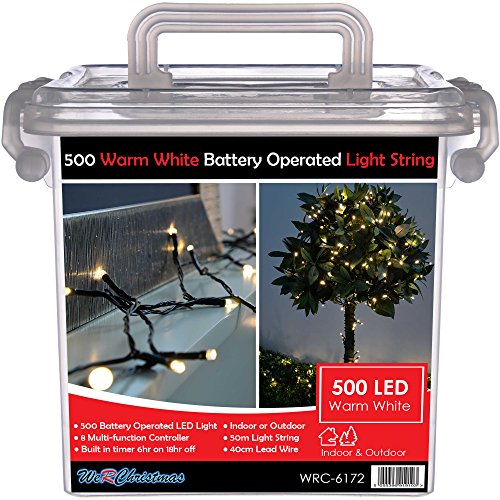 WeRChristmas, Luci LED di Natale da esterni, a batteria, con timer, 10 m, 500 LED