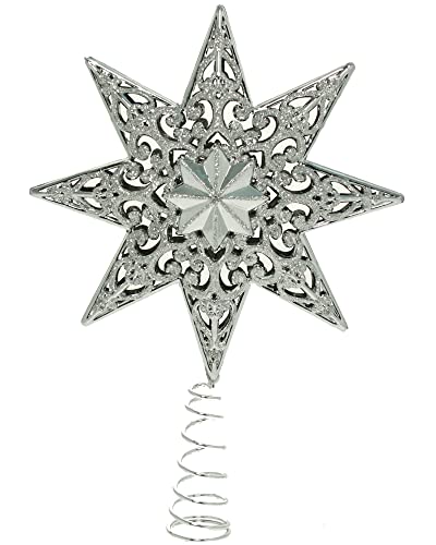 WeRChristmas - Puntale per albero di Natale, a forma di stella con brillantini, 21 cm, in plastica infrangibile, colore: argento