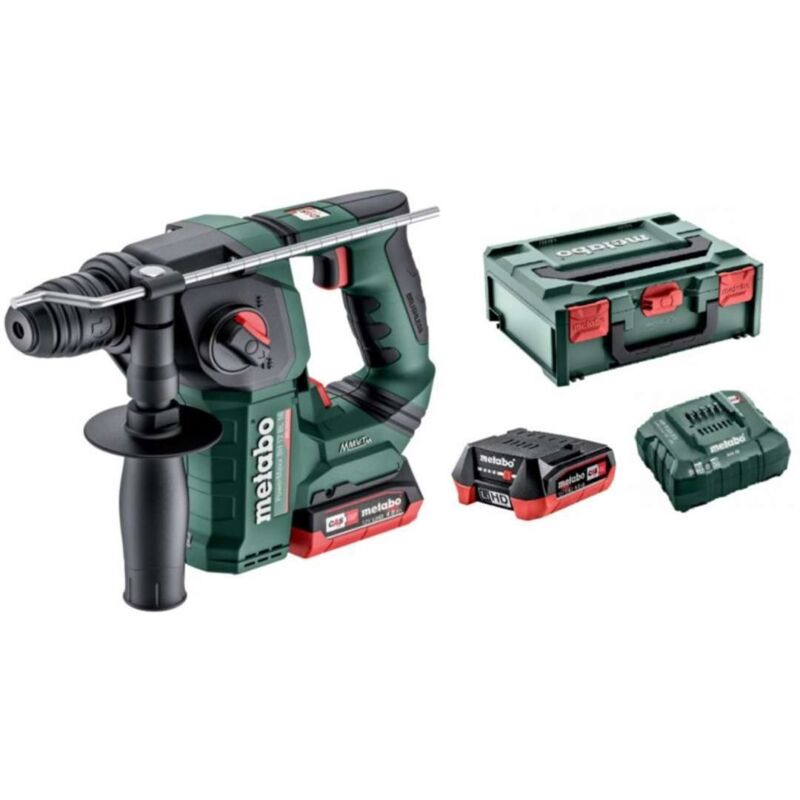 Martello batteria molto più leggero e compatto con motore brushless per la foratura di fatica in ciascuna posizione di lavoro. La classe MetaBo 12-Volt - facile in mano, fortemente in uso. Prestazioni massime di perforazione, efficienza e vita a causa della tecnologia brushless e della mostra ad alte prestazioni. Drill Hammer con 2 funzioni: perforazione e foratura del martello. Metabo Vibratech (MVT): sanità, la fatica funziona anche in uso continuo. Vario Tacho Constamatic (VTC) Elettronica a onda intera per lavorare con velocità appropriate del materiale che rimangono costante sotto carico. Arresto della sicurezza elettronica del motore quando si blocca lo strumento Inserisci per un funzionamento sicuro. Luce di lavoro a LED per una vista ottimale del punto di perforazione. Pacchetto batteria Lihd per prestazioni definitive, runtime e vita estremamente lunghi. Pacchetti batteria con display di capacità per il controllo dello stato di carica.