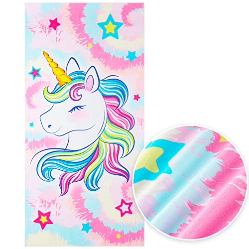 WERNNSAI Asciugamano da spiaggia per bambini, motivo unicorno, 76x150 cm, colore arcobaleno, per ragazze, ad asciugatura rapida, ultra assorbente, senza sabbia, spiaggia, piscina, doccia, telo