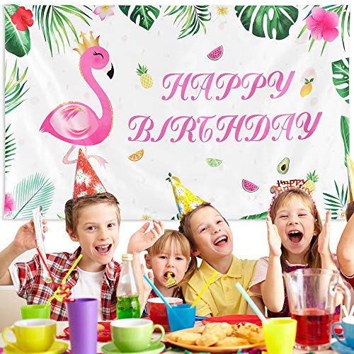 WERNNSAI Fenicottero Decorazione del Partito - 185cm x 110cm HAPPY BIRTHDAY Sfondo Fotografico Tropicale Hawaiano Tema Articoli per feste per Ragazze Estate Luau Grande Parete Bandiera