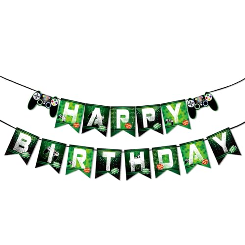 WERNNSAI Gioco Decorazioni di Buon Compleanno - Video Gioco Forniture per Feste Buon Compleanno Striscioni Bunting Ghirlanda per Ragazzi Bambini Gaming a Tema Decorazioni per Feste Assemblato