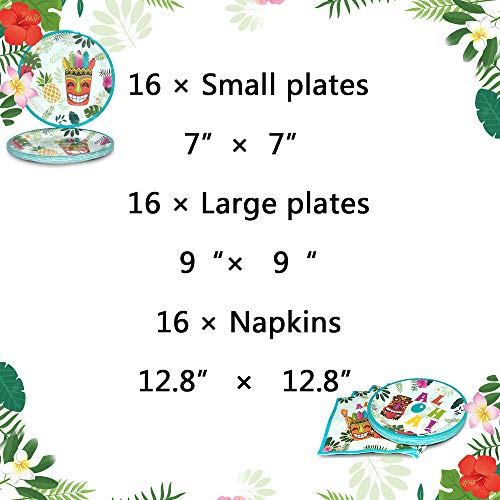 WERNNSAI Hawaiano Aloha Stoviglie per Feste - Luau Piatti e Tovaglioli per Ragazzi Bambini Compleanno Cena Dessert Serve 16 Ospiti