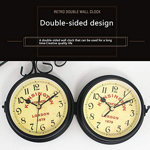 WERTAZ Orologio da Parete Bifacciale Orologio da parete vintage in ferro battuto effetto antico Appeso Orologio retrò Stazione Lampadario tondo con scorrimento a parete Montaggio laterale
