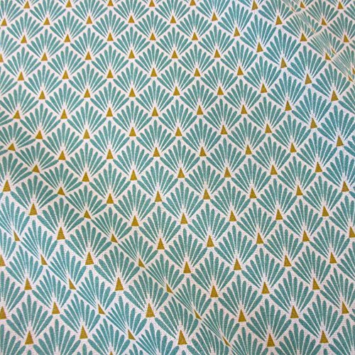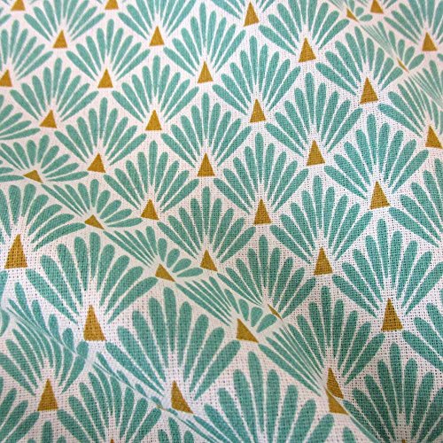 Werthers Stoffe, tessuto in cotone al metro, motivo: ventagli rotondi in stile giapponese, colore: turchese, ottone