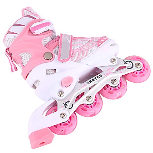 WeSkate Pattini in Linea per Bambini con Ruote Luminose Pattini Comodi in Mesh Traspirante per Ragazze e Ragazzi Taglia 31-42 (Rosa, Blu)