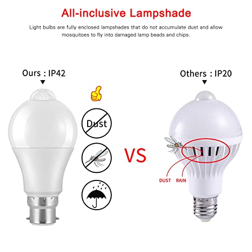 Lampadine a LED con sensore di movimento B22: le lampadine a LED hanno un sensore di movimento integrato che si spegne automaticamente durante il giorno e si accende automaticamente di notte quando viene rilevato un movimento.