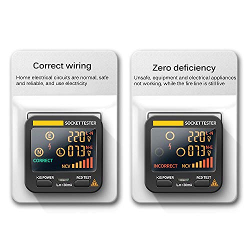 Weskjer Tester di Tensione, Display LCD Digitale Tester presa Intelligente Spina UE Rilevatore RCD Polarizzazione Elettroscopio per Rete Spina di Prova per ANENG AC11
