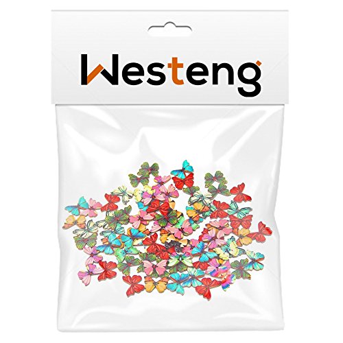 Westeng - Confezione da 50 pezzi di bottoni in legno con 2 fori a forma di farfalla, colori misti, per cucito e fai da te