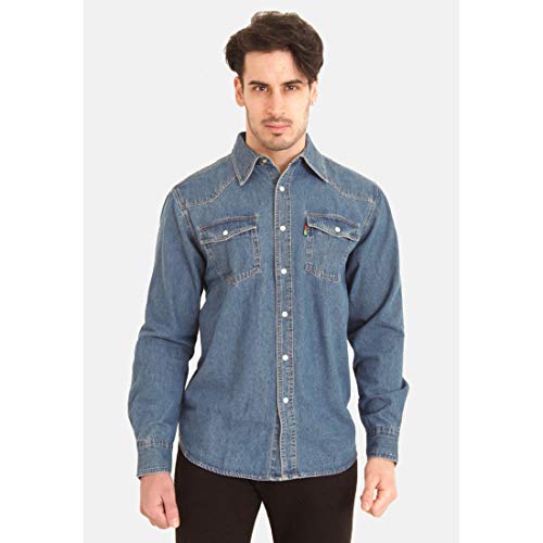 100% cotone denim Taglie (i cm indicati si riferiscono alla circonferenza torace della persona a cui è destinato il capo e non alle misure effettive del capo stesso): Small: 91-94 cm, Medium: 96-99 cm, Large: 102-104 cm, XL: 107-109 cm, XXL: 112-117 cm.