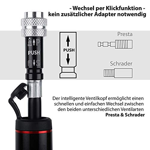 Exact pompa di gonfiaggio ad alta pressione 150 PSI / 10, 5 bar. pistone sovradimensionato di questa pompa portatile abilitare pressione di azionamento con il 30% meno colpi rispetto a pompa di aria mini convenzionale per realizzare. tubo dell'aria stage design flessibile con valvola difficile o stretto.