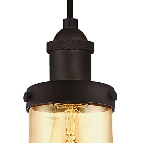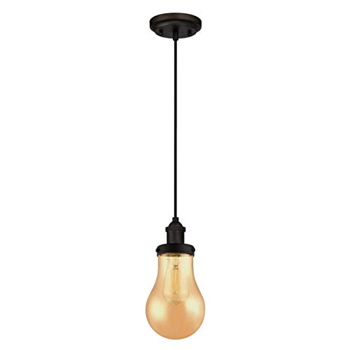 Westinghouse 6337040 Lampada a Sospensione per Interni Monoluce, Bronzata ad Olio, Paralume in Vetro a Goccia in Ambra, nero