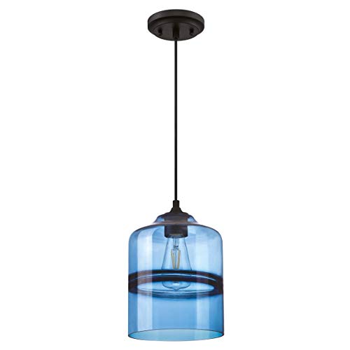 Westinghouse Iluminazione interiore Lighting 63666 - Lampada a sospensione da interno a una luce, finitura nera opaca con vetro zaffiro, ambrato