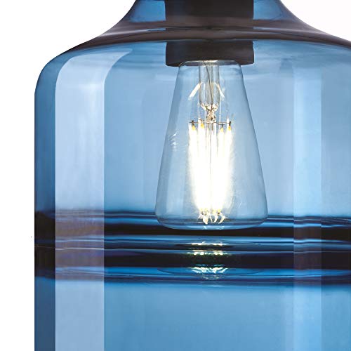 Sottolineate il vostro stile decorativo individuale con questa moderna lampada a sospensione da interno a una luce caratterizzata dal nero opaco e dal vetro zaffiro blu soffiato a mano