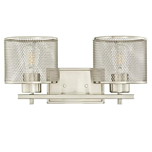 Westinghouse Lighting 63277 - Apparecchiatura da parete da interno Morrison a due luci, finitura in nichel spazzolato con paralumi in maglia
