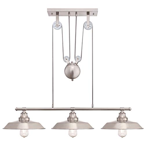 Westinghouse Lighting 63699 - Lampada a Sospensione a Puleggia da Interno Iron Hill per Isole della Cucina a Tre Luci, Finitura in Nichel Spazzolato, Bronzo Lucidato a Olio