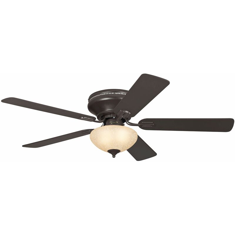 Descrizione Il ventilatore a soffitto Everett Westinghouse, perfetto per le stanze con soffitti bassi, garantisce comfort tutto l'anno. Le ricche decorazioni con finiture color espresso e legno scuro, nonché il kit d'illuminazione composto dalla plafoniera in vetro scavo, garantisce una luce calda e accogliente. Numero riferimento prodotto 72154. Contenuto della confezione 1 X Ventilatore a Soffitto
