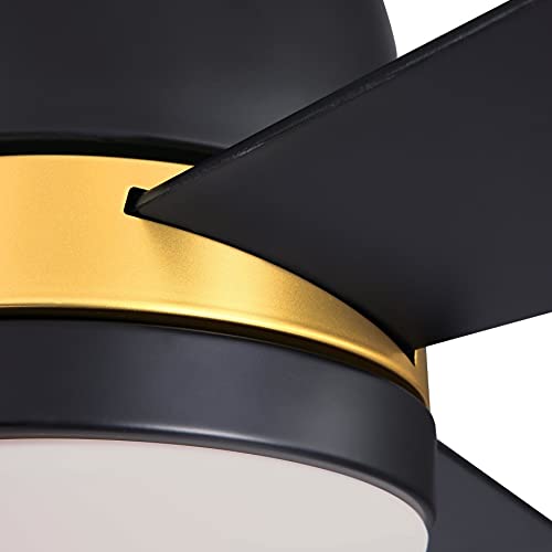 Westinghouse Lighting 73039 Tristan, moderno ventilatore da soffitto con luce e telecomando, 132 cm, finitura nera opaca con accenti dorati, vetro smerigliato opale