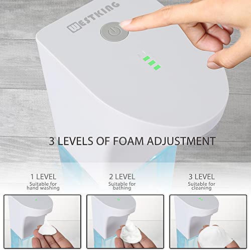WESTKING Distributore automatico di sapone, distributore di schiuma da 300 ml a parete, lavamani senza contatto regolabile a 3 livelli, adatto per bagno, cucina, ufficio