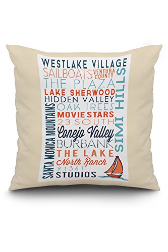 Westlake Village, California - Typography (20x20 Spun Polyester Pillow Case, White Border)