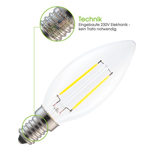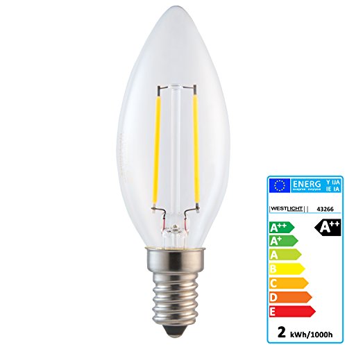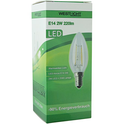 6x Westlicht E14 2W Candela Filamento | Pacchetto Offerta! | 270° LED Luce | AC 230V 220lm bianca calda