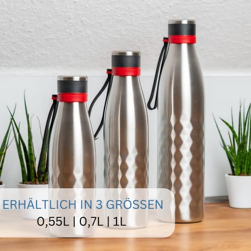 Westmark Borraccia termica, Tiene caldo/freddo per 8h, Resistente alla CO2, 700 ml, Acciaio inox/Silicone/Plastica, Senza BPA, Viva, Argento/Rosso, 5283226S