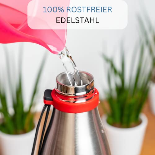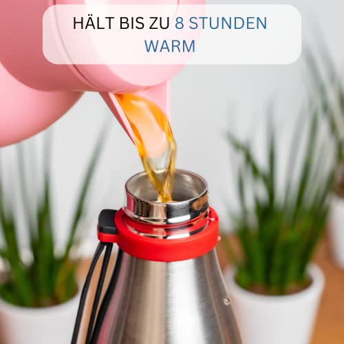 Borraccia isolata termicamente, attraente e durevole, Costruzione in acciaio inox a doppia parete, Tiene caldo e freddo per 8 ore, Per bevande fredde come acqua gassata, succhi e smoothies e bevande calde come tè e caffè