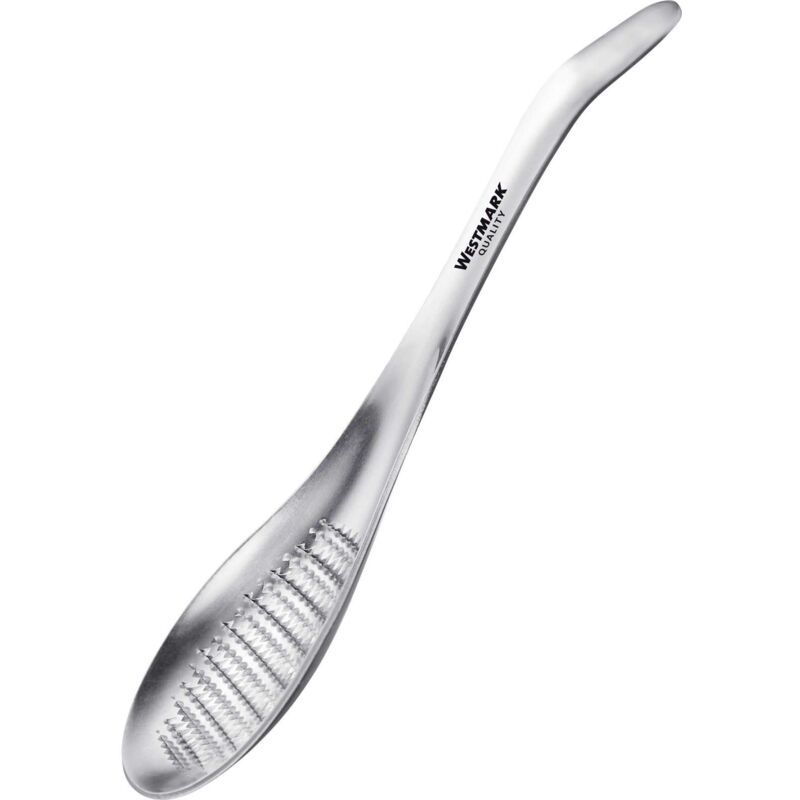 Pratica grattugia per zenzero, wasabi, aglio, noce moscata, curcuma, cioccolato, formaggio a pasta dura, scorza di limone, etc., Superficie affilata - Vantaggio: il prodotto da grattugiare viene fermato nel cucchiaio e può essere dosato con precisione direttamente sul cibo o la bevanda - Design ergonomico facile da maneggiare, Per preparare pietanze fresche e salutari - Lunga durata, Lavorazione robusta, Lavare a mano, Non lavabile in lavastoviglie - Contiene: 1x Westmark Grattugia a cucchiaio, Dimensioni: 18,3 x 4,2 x 1,7 cm, Peso: 51 g, Materiale: Acciaio inox, Colore: Argento, 11582260.