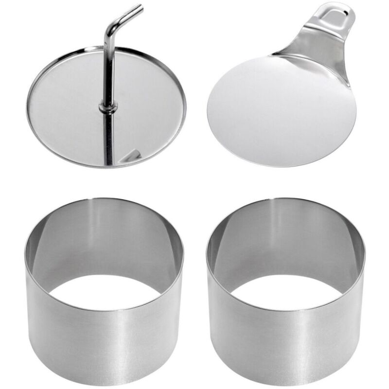 Stampi per dessert e cibo da 4 pezzi della Westmark, composti da: 2 stampi per cibo, 1 pala per cibo e 1 timbro. Ideale per tagliare impasti, porzionare antipasti e contorni come riso e verdure e servire dolci, panini e pasticcini. Con alzavivande con stampa a pressione per un servizio ottimale di cibi e antipasti. Materiale: acciaio inossidabile.