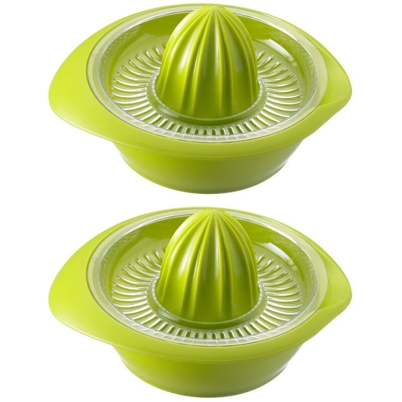 2 classici spremiagrumi con beccuccio, Preparazione semplice di spremute di arancia o succo di limone e lime - Lamelle ben definite sulla cupola per assicurare buoni risultati, Facile rimozione dei semi e della polpa attraverso il setaccio rimovibile - Vaschetta (capacità 0,5 litri) con beccuccio per dosare facilmente il contenuto, Buona presa grazie al bordo esterno facile da afferrare e base con anello in gomma - Made in Germany: Lunga durata, Lavabile in lavastoviglie - Contenuto: 2x Westmark Spremiagrumi con vaschetta, Limetta, Dimensioni: 18,7 x 17 x 10,5 cm, Materiale: Plastica (PP, SAN), Colore: Verde mela, 309122EA