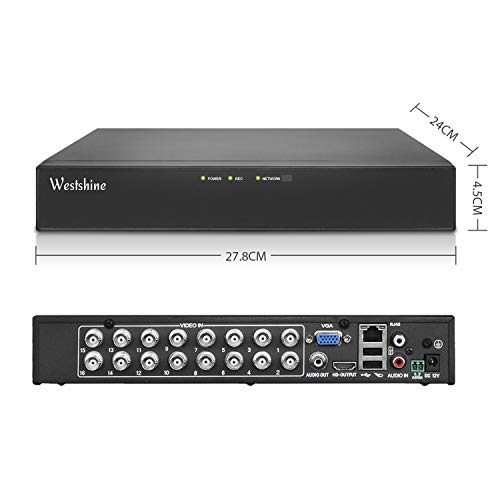 Westshine 16CH 5MP DVR H.265 CCTV Security Digital Video Recorder,4K output/P2P Cloud/Email Alert/Remote Smartphone Access-Fits for 5MP/4MP/1080P AHD/TVI/CVI/IP Camera(Il disco rigido non è incluso)